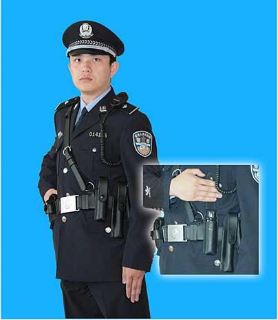 (3)、對(duì)講可掛在武裝帶右手邊,左手掛強(qiáng)光手電、伸縮警棍等物。