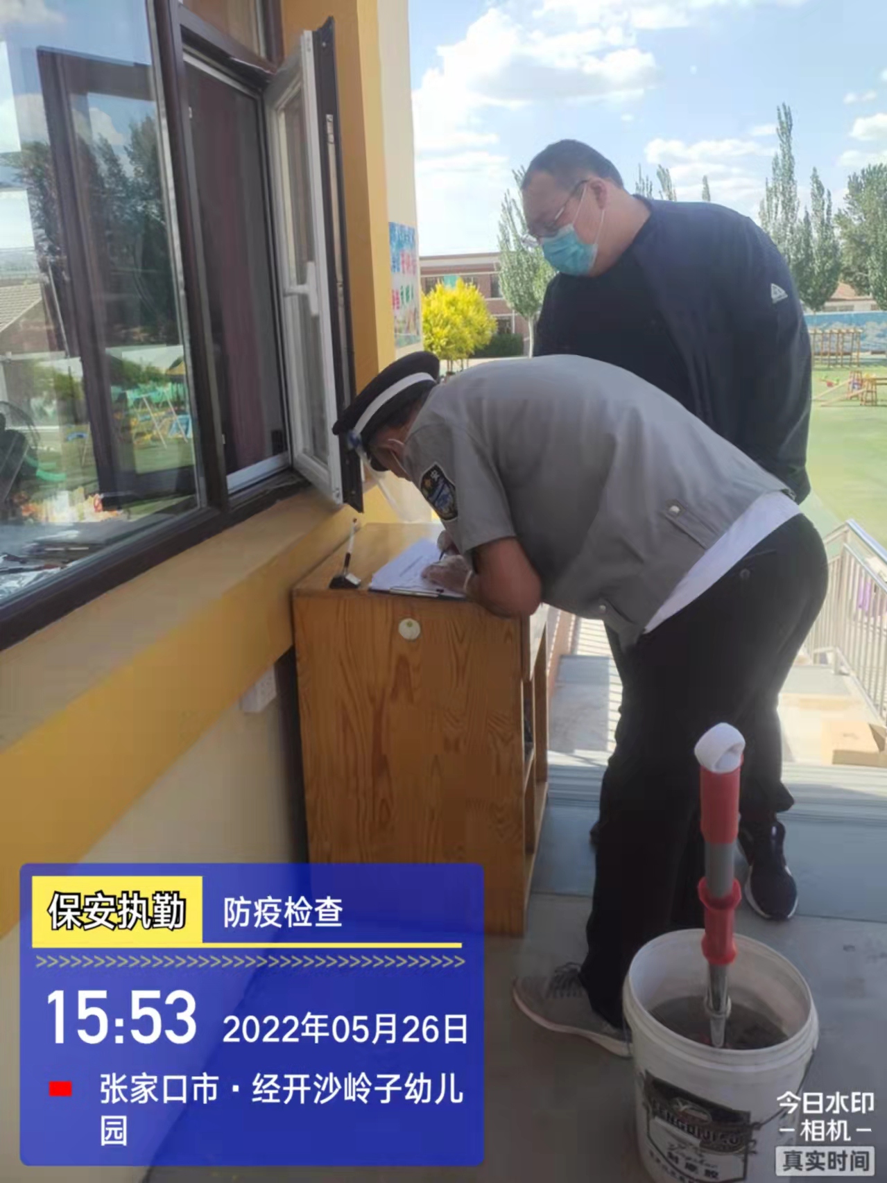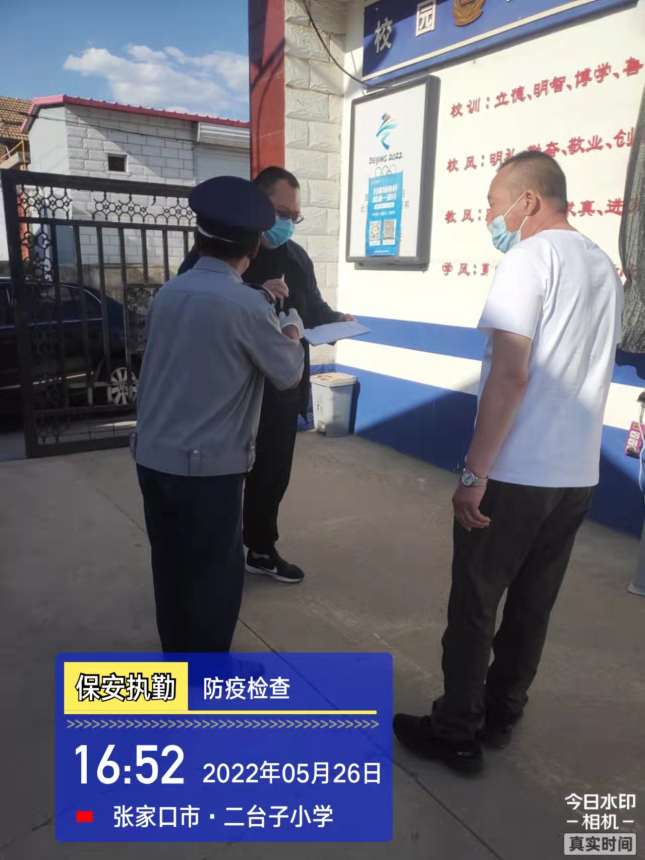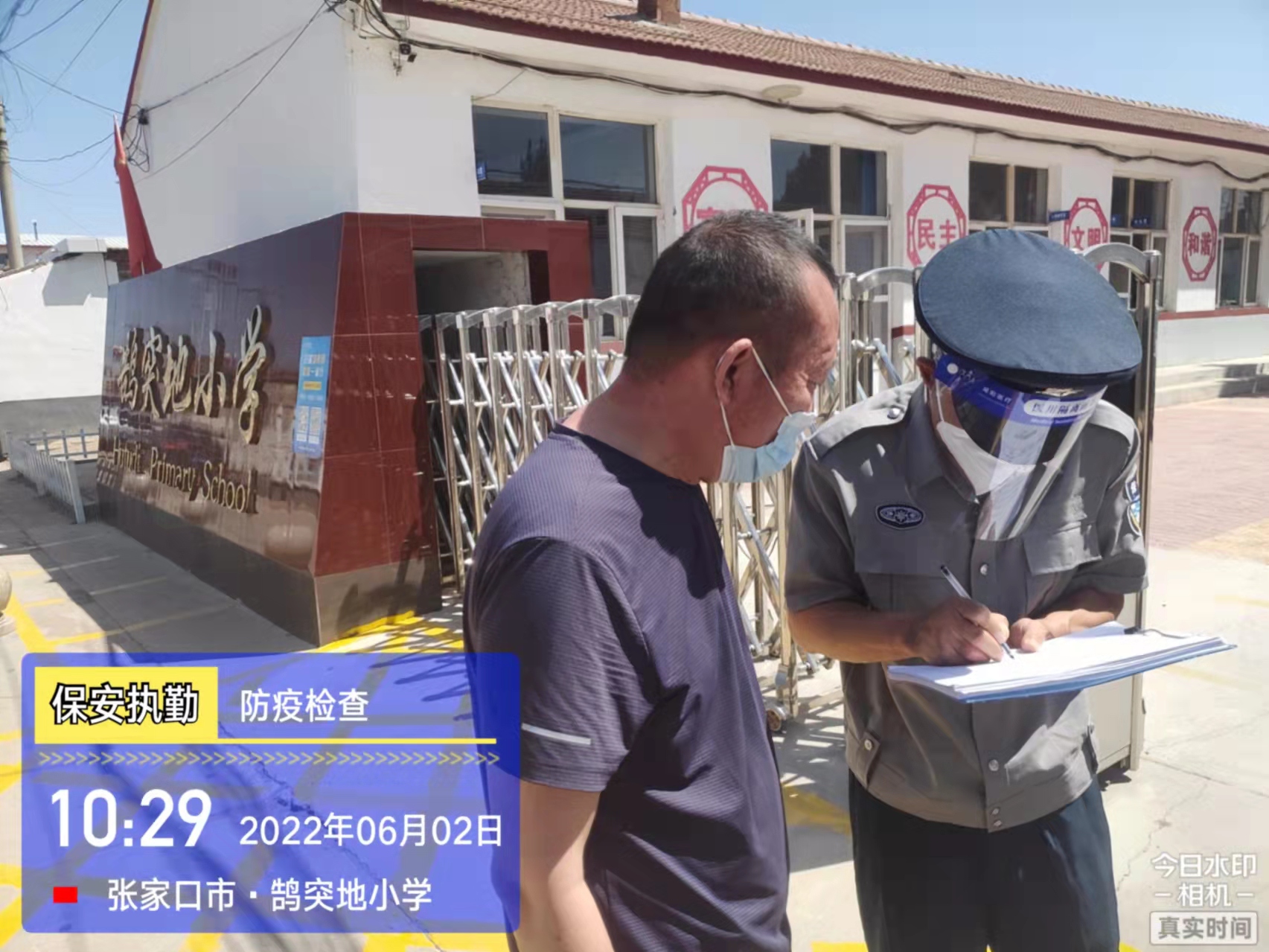 會后,我公司迅速召開“疫情期間學校門衛(wèi)安全防控工作要求”的會議,制定了校園安全防疫規(guī)定:疫情防控期間,校園保安隊員必須穿制服,規(guī)范佩戴“三件套”(防護隔離面罩、N95口罩、一次性PVC手套);進出校園的師生必須測量體溫,外來人員需登記、測溫、掃碼(幸福張家口,呈綠碼)、且持7日內(nèi)核酸陰性檢測結果;保安室需保持干凈整潔,物品擺放有序,勤開窗通風,定期噴灑消毒藥水。為此,公司特成立校園防疫檢查小組,由副經(jīng)理帶隊,協(xié)同主管大隊長對經(jīng)開區(qū)所有中小學校安保崗位進行防疫工作檢查,檢查期間,發(fā)現(xiàn)問題,現(xiàn)場處理,并及時與校方領導溝通,杜絕同樣問題再次出現(xiàn),確保校園防疫安保工作萬無一失,為各校師生鑄就一道安全防線!
